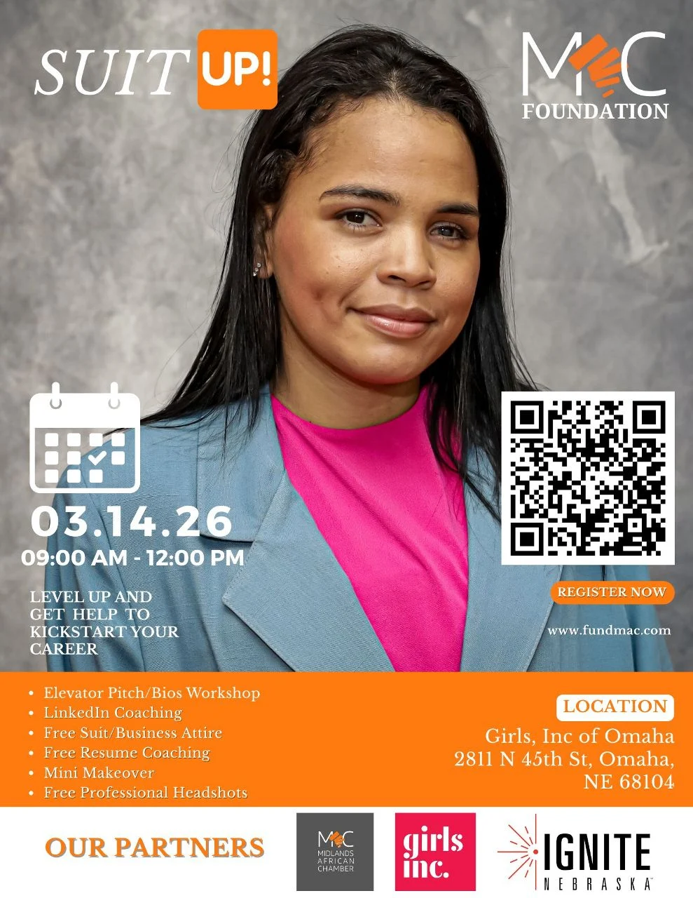 The mission of the Midlands African Chamber’s Suit Up Program is to empower young men and women to achieve economic independence by providing a network of support, professional attire, headshot, and job readiness workforce preparation.